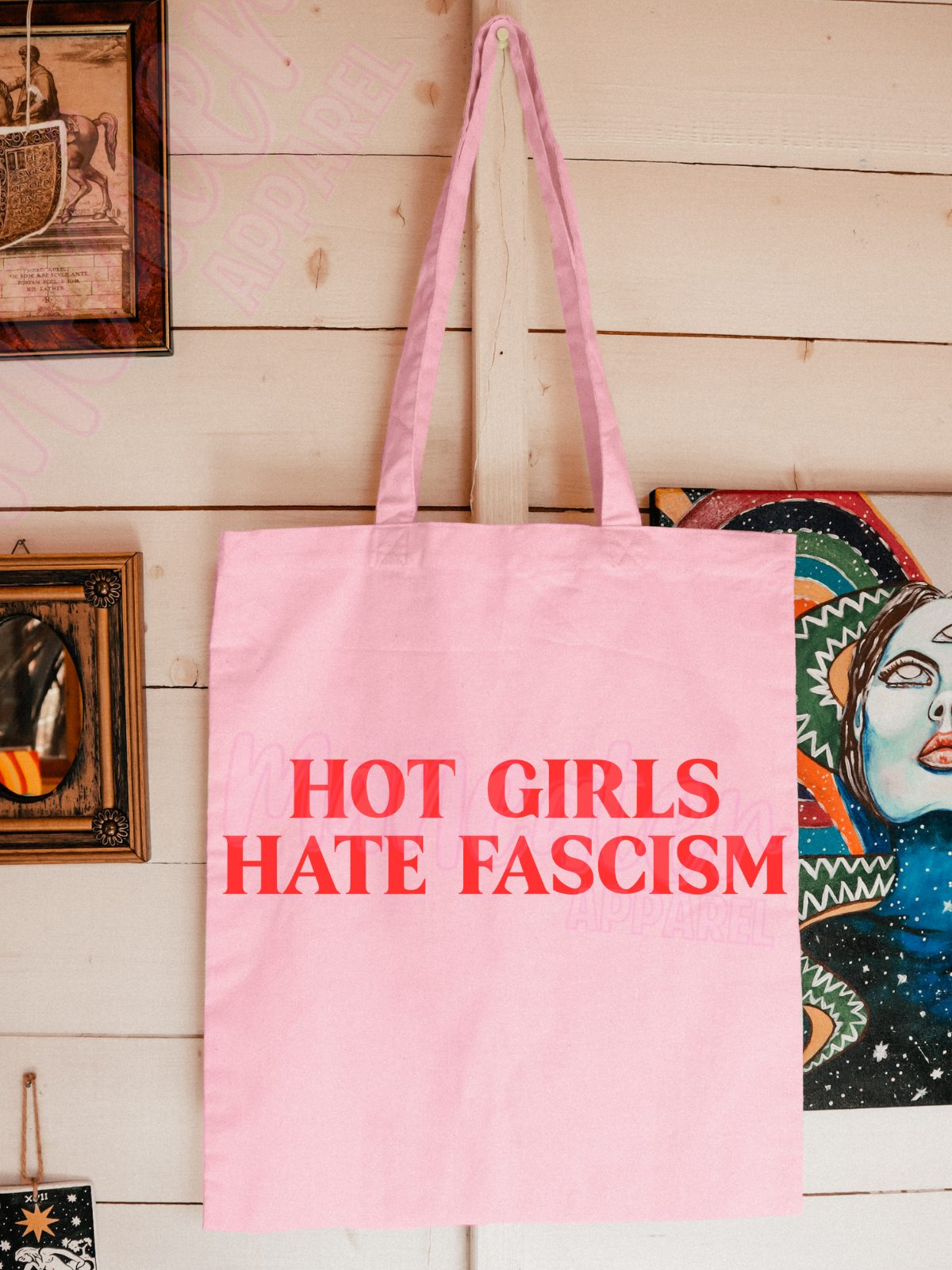 hot girls hate fascism tote bag
